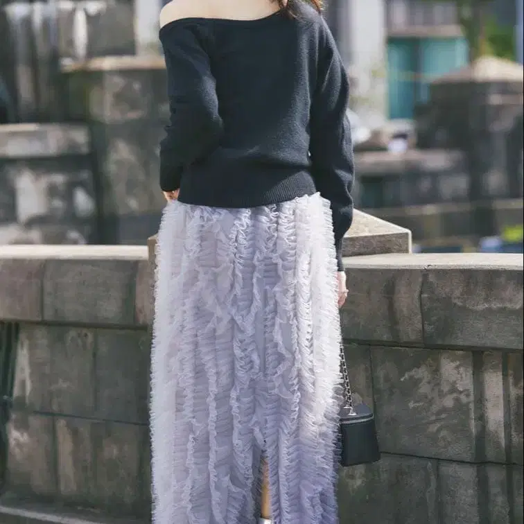 [ 미사용 새상품 ] 튤 프릴 I 라인 스커트