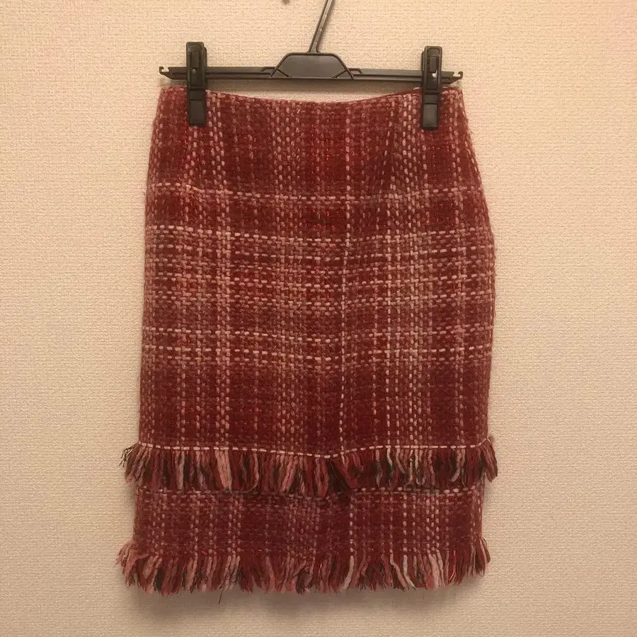 ANAYI 빨간색 체크 무늬 트위드 타이트 스커트