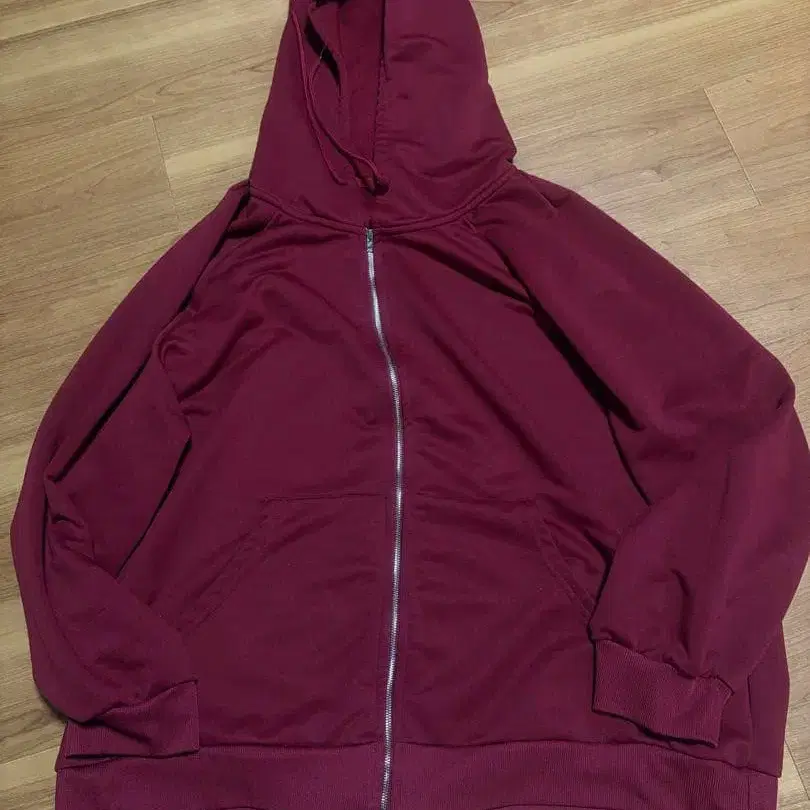 SHEIN 버건디 풀 지퍼 후드티 2XL