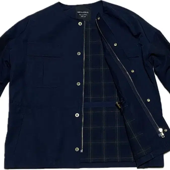 새상품급 MICA&DEAL 운모 노카라 자켓 38 네이비