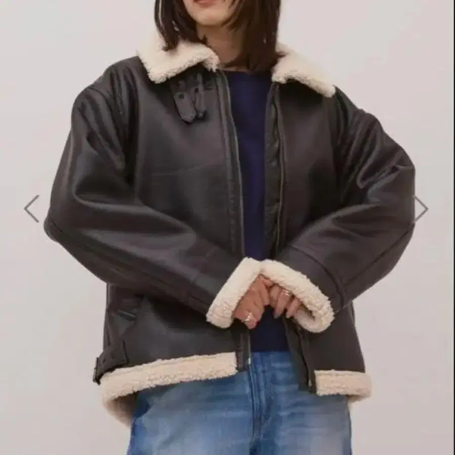 페이크 레더 자켓 보아 카라 부착 블랙 페이크 무스탕 자켓