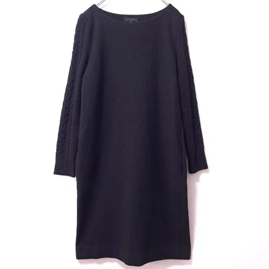 MOGA 원피스 울 블랙 M 사이즈 소매 니트 무릎 기장