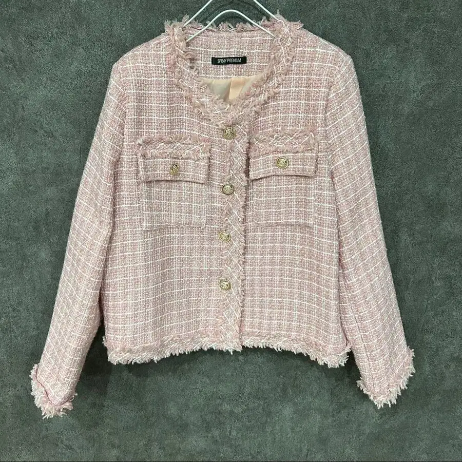 SPRAY PREMIUM 노카라 트위드 자켓 핑크 (F)
