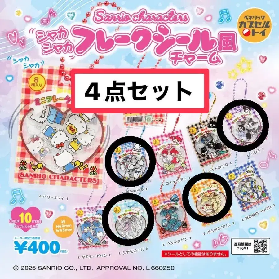 산리오 바스락 프레이크 씰풍 참 4개 세트