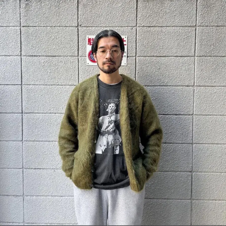 레몬티 프라질리 모헤어 가디건 올리브 커트 코베인