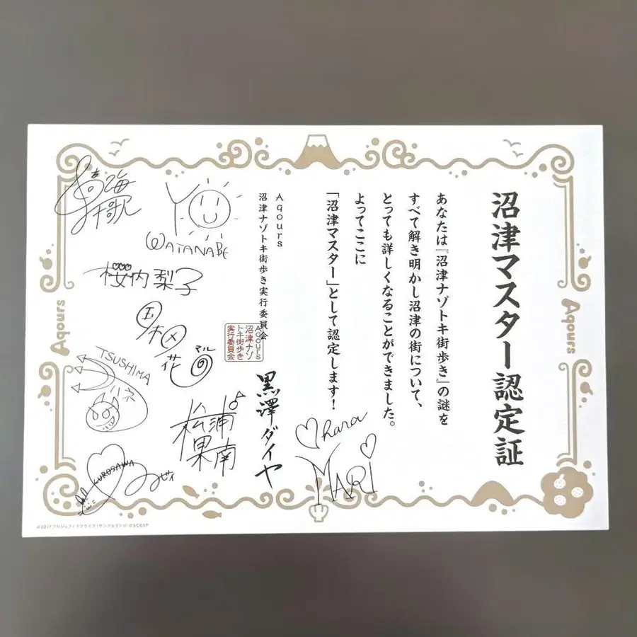 러브 라이브! 선샤인!! Aqours 누마즈 수수께끼 거리 산책 인증서