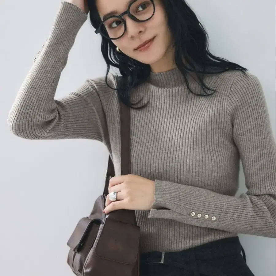 VIS 슬리브 단추 악센트 리브 니트