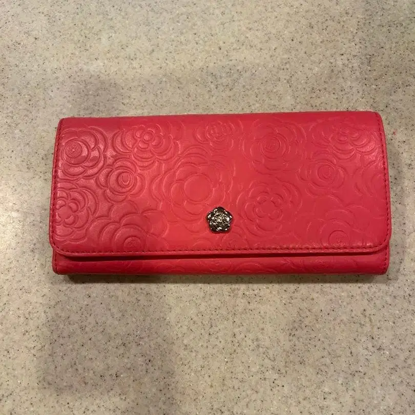 CLATHAS 꽃무늬 엠보싱 가공 핑크 장지갑