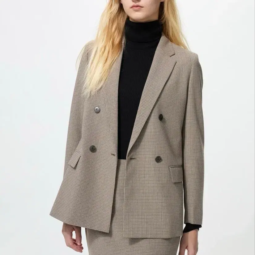 유니클로 더블 자켓 35 브라운 M 스커트 셋업