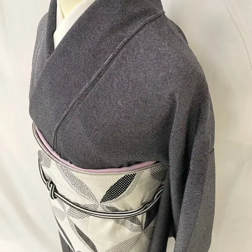 미사용 새상품 순수 실크 이중 기모노 극 모노톤 상어 코몬