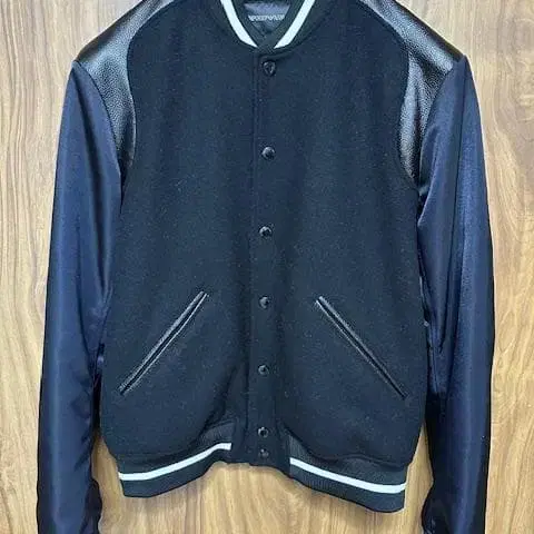 O'NEIL 가죽 바시티 자켓 울 블랙 브라운 천연 가죽 90s 00s