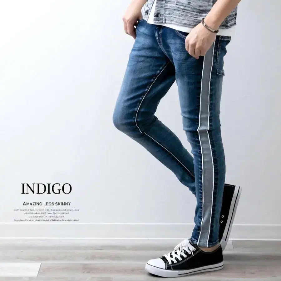 INDIGO 슈퍼 스트레치 스키니 데님 사이드 라인 팬츠