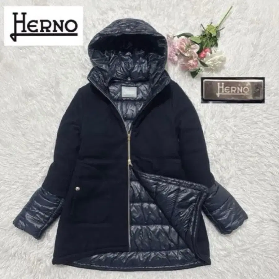 • 초인기! 새상품급 HERNO 헬노 롱다운 코트 네이비 40호