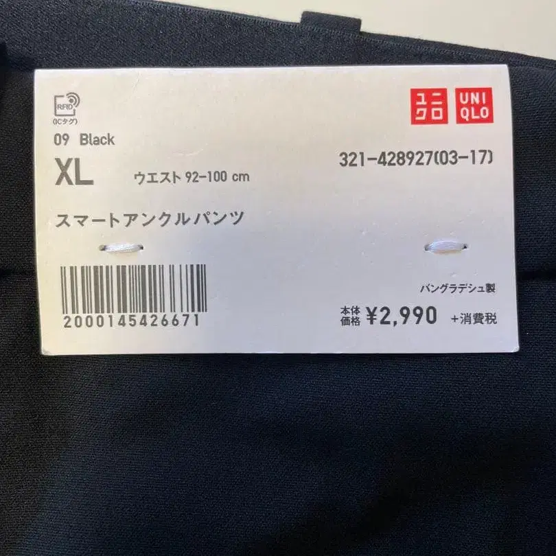 미사용 새상품 UNIQLO 스마트 앵클 팬츠 XL 블랙