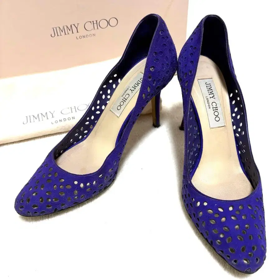 [ 특가 ] 지미추 펌프스 37 퍼플 컷워크 힐 9cm