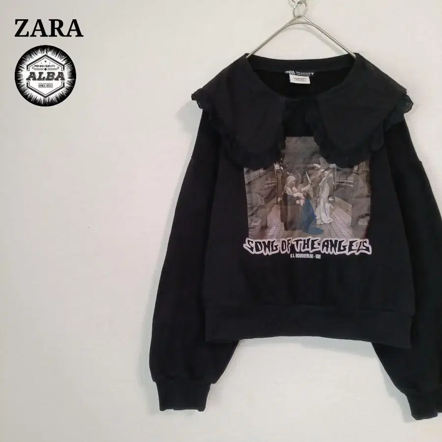 ZARA 자라 맨투맨 프릴 숏 기장 걸리시 블랙 M 긴팔
