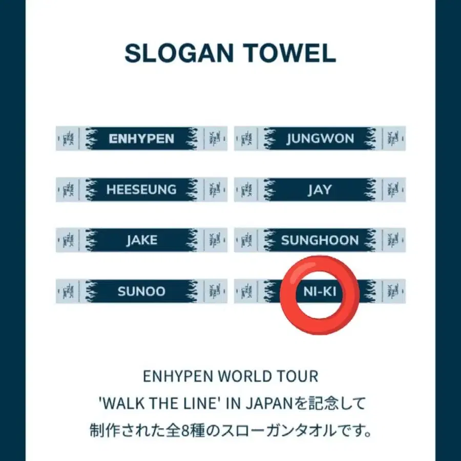 ENHYPEN NIKI WALK THE LINE 슬로건 타월