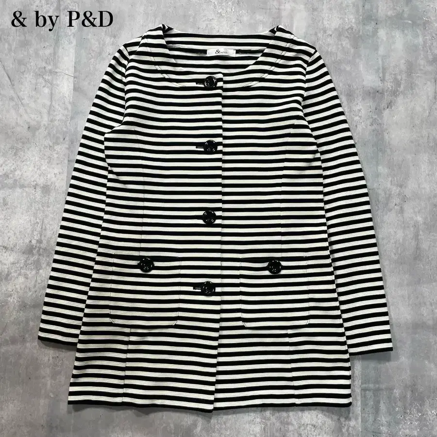 앤드바이핑키앤다이안 [ M ] 노카라 자켓 보더 무늬 미들 기장