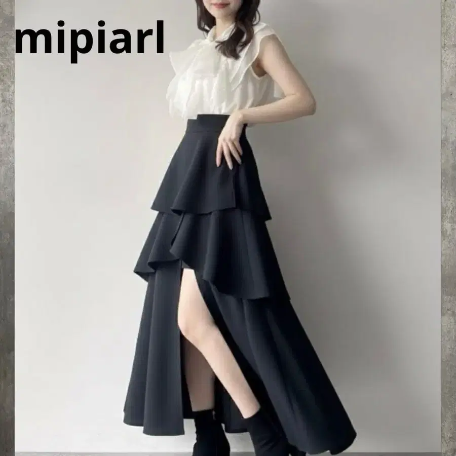 mipiarl 하이웨스트 슬릿 티어드 팬츠 스커트 블랙