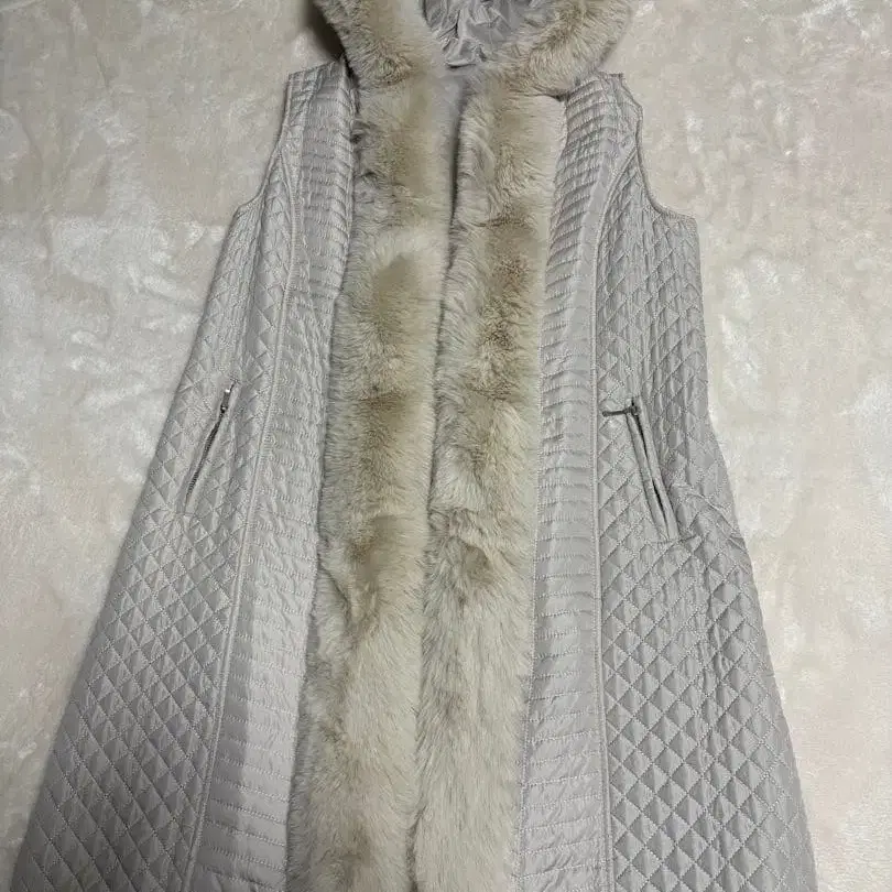 noa-ge 노아제 퀼팅 퍼 부착 롱베스트 아이보리 M 사이즈