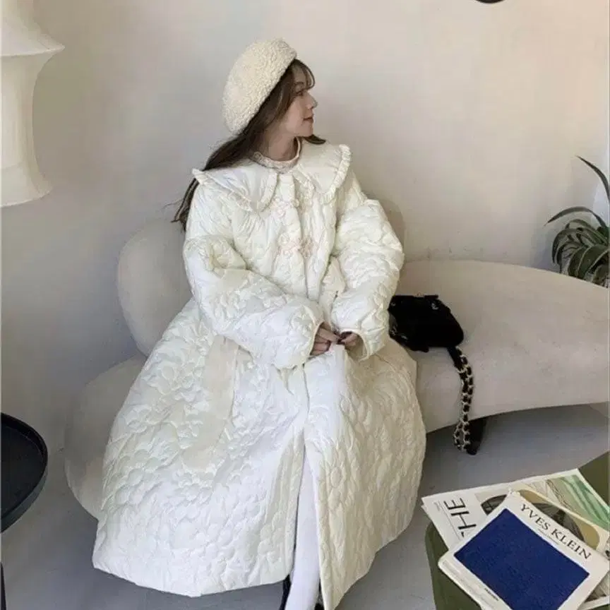 꽃무늬 퀼팅 코트 한국 리본 발레코어 롱 코트 천사계 패션