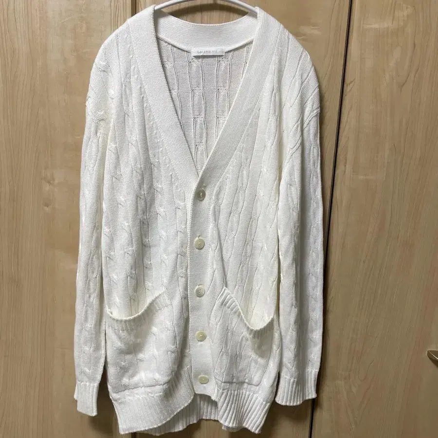 [ 새상품급 ] 갤러리 바이 케이블 니트 가디건 화이트 코튼 V