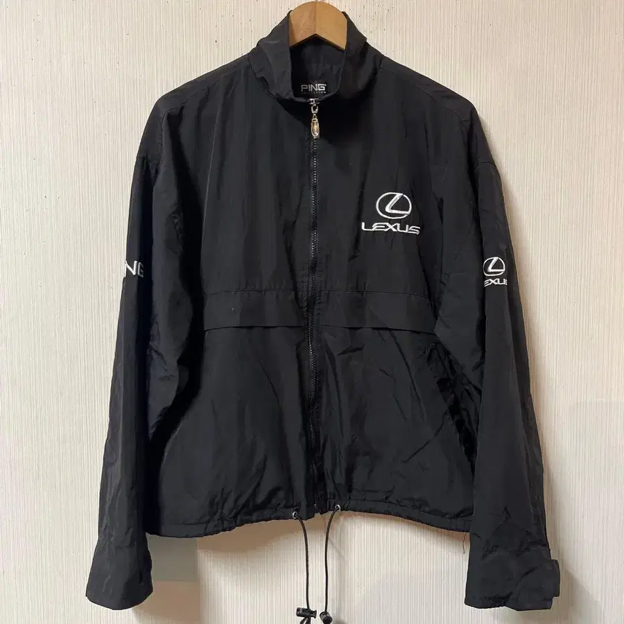 렉서스 핑 숏 기장 블루종 블랙 자수 남성용 드로 코드