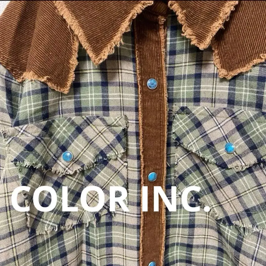 이 빈티지 셔츠는 이 소재의 체크 무늬와 코듀로이의 조합이 특징이며, 터콰이즈 버튼이 인상적입니다. 캐주얼하면서도 개성 있는 스타일을 연출합니다.