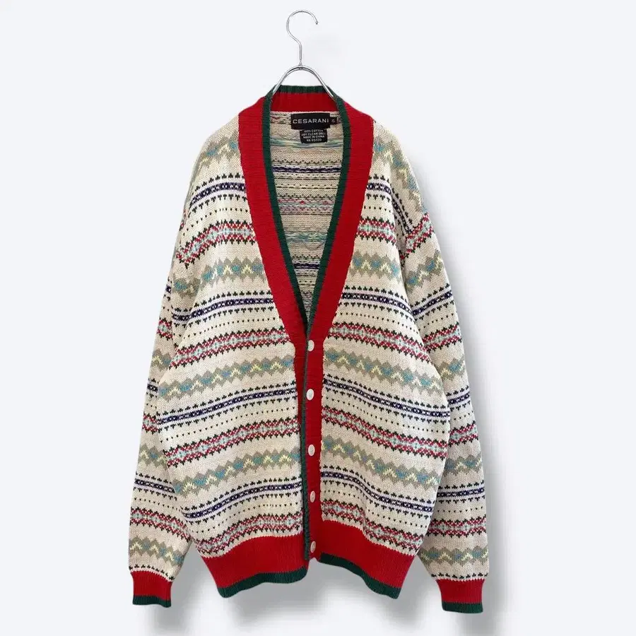 빈티지 울 핸드 니트 디자인 가디건 레어 USA 구제 의류