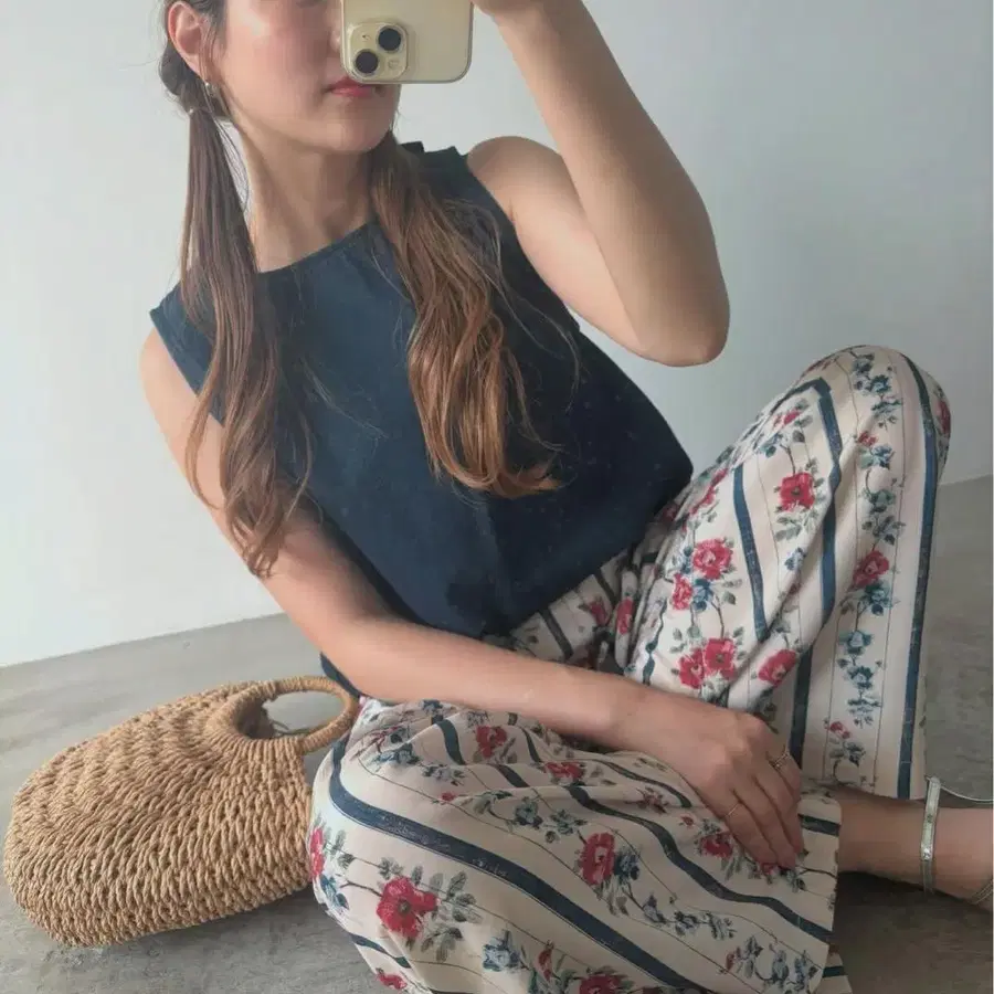 anchic 스트라이프 플라워 프린트 이지 팬츠 베이지 S