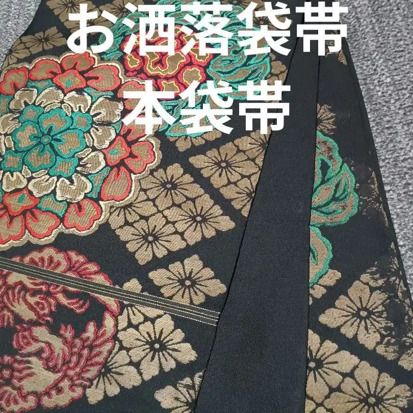 캐주얼 오비 후쿠로 오비 당초 직조 블랙 베이스 하나비시 문양 순수 실크
