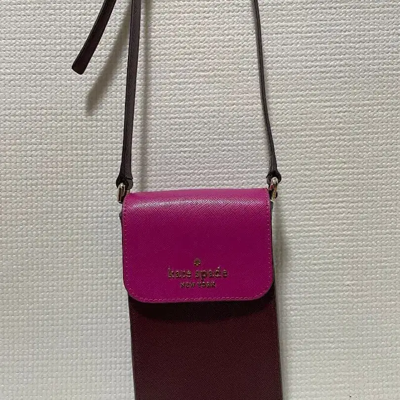 퍼플과 버건디 색상의 플랩이 있는 숄더백이며, 뒷면에 포켓이 있습니다.