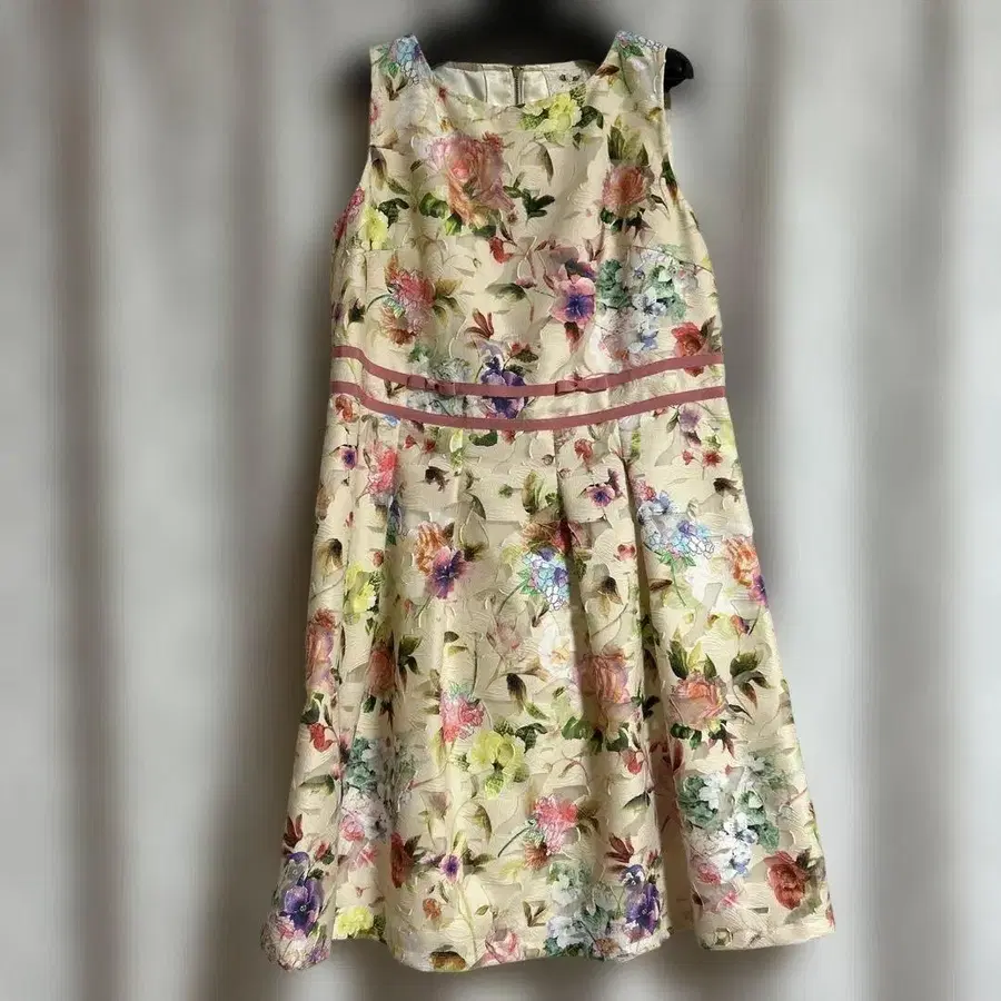 꽃무늬 슬리브리스 무릎 기장 원피스