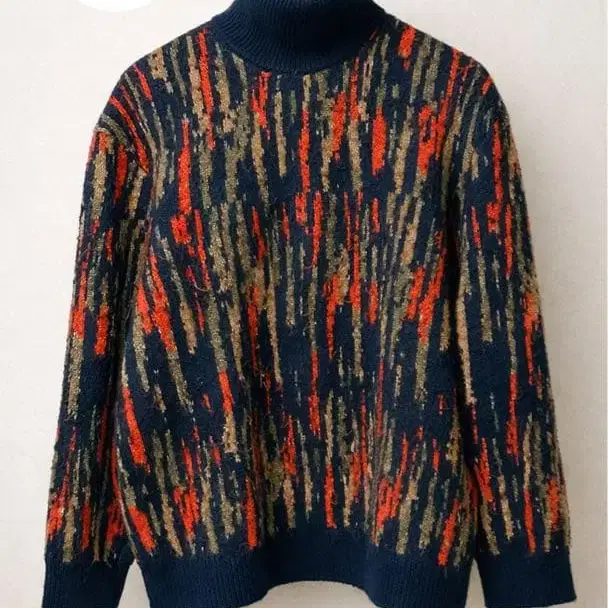 ZARA 니트 스웨터 터틀넥 올 패턴 네이비 계열 남성용 L