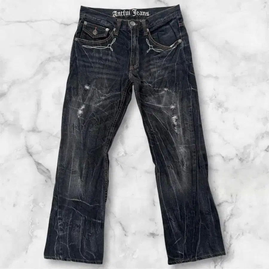 [상품명] 아카이브 그런지 플레어 데님 y2k 00s 데미지