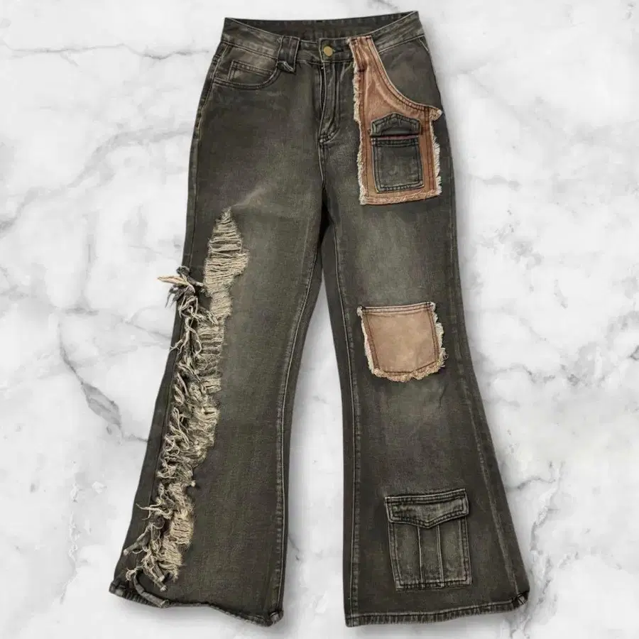 [상품명] 아카이브 그런지 플레어 데님 y2k 00s 데미지