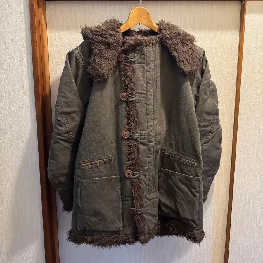 다크 그레이 밀리터리 퍼 자켓
