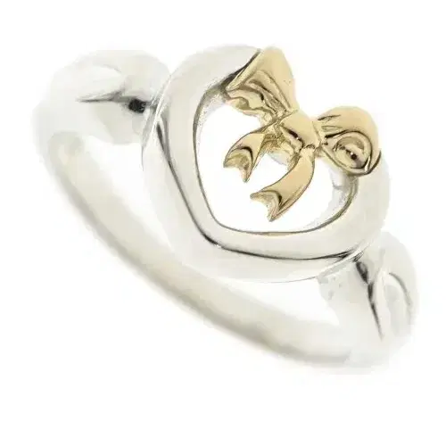 [ 댓글 ] 주얼리 하트 리본 반지 Sv925(스털링 실버) K18YG/750(옐로우 골드) 새상품 마감 완료