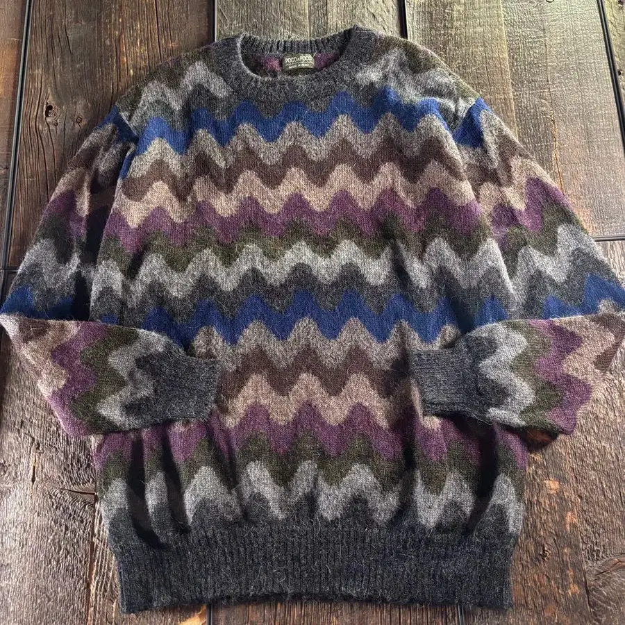 구제 의류 알파카 총무늬 니트 파도 보더 기모 L 멀티 컬러 니트 스웨터