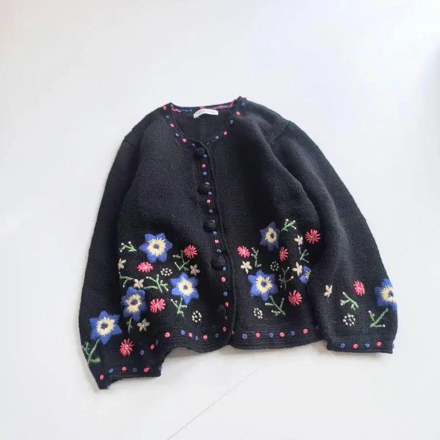 빈티지 꽃무늬 손자수 니트 가디건 블랙B2