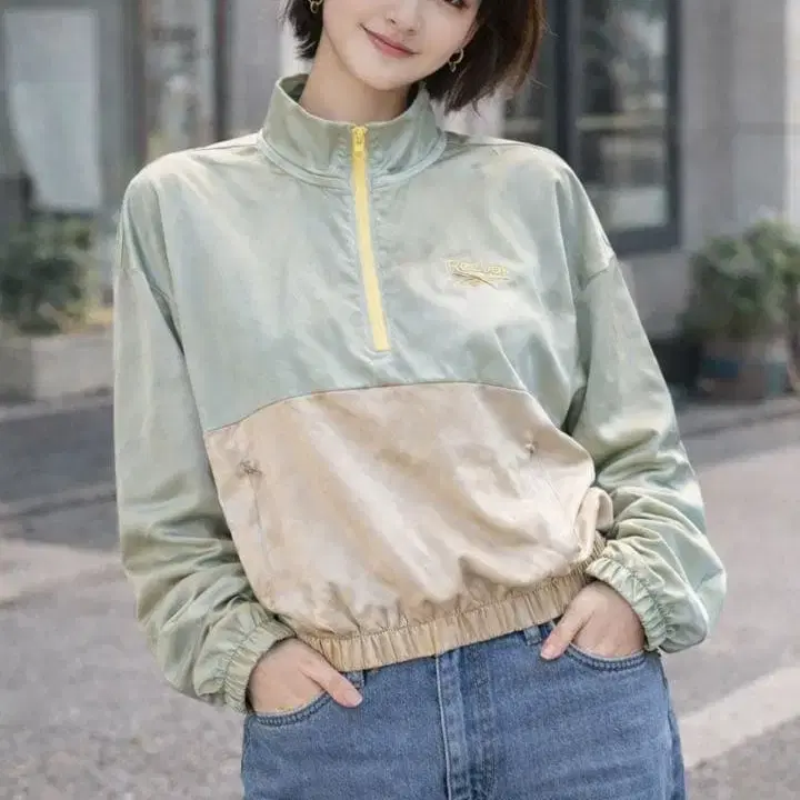 [ 새상품급 ] Reebok 여성용 긴팔 하프 지퍼 새틴풍 상의 XS