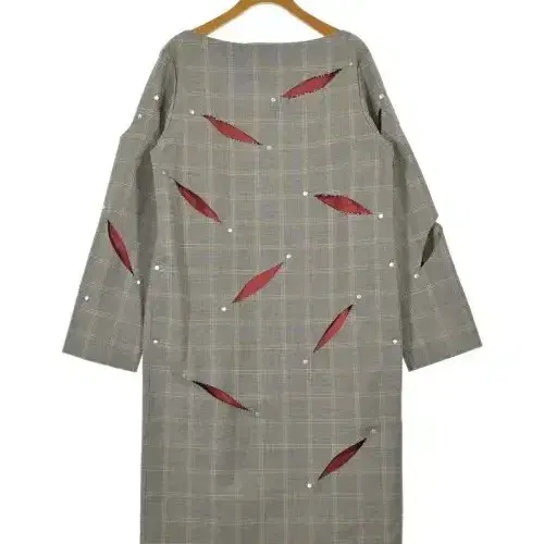새상품급 시크릿 매직 꽃무늬 자수 체크 원피스 M 레이스 등 트임