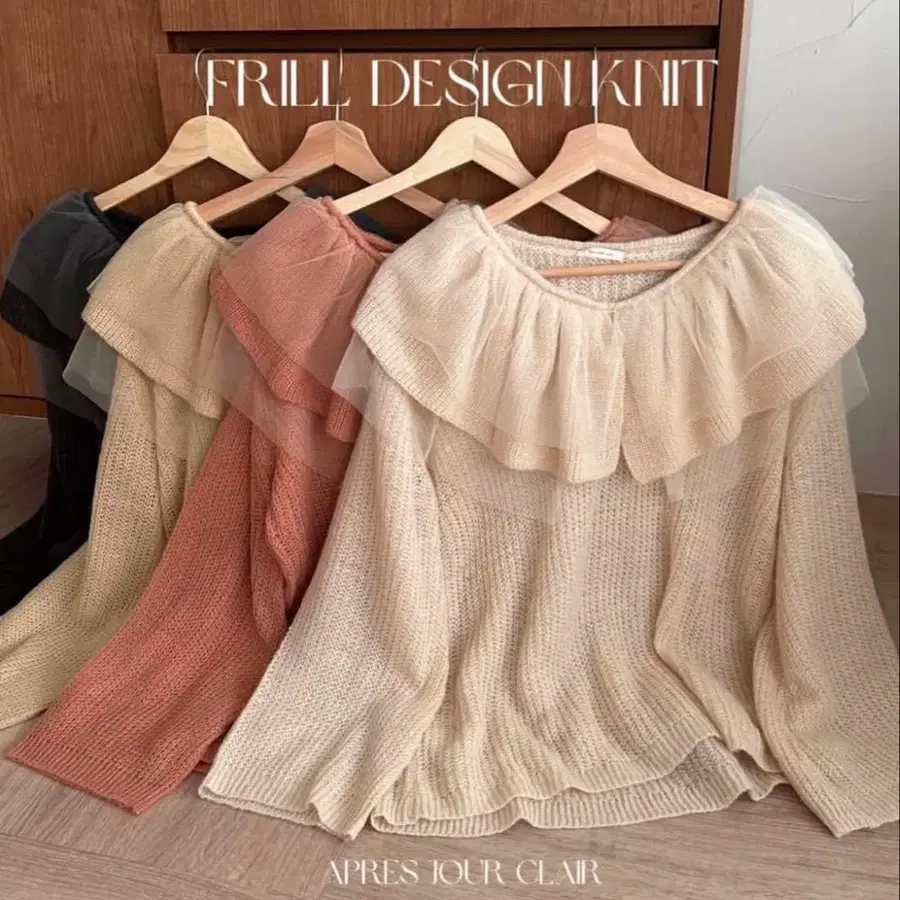 튤이 겹쳐진 큰 옷깃이 눈길을 끄는 니트 풀오버.