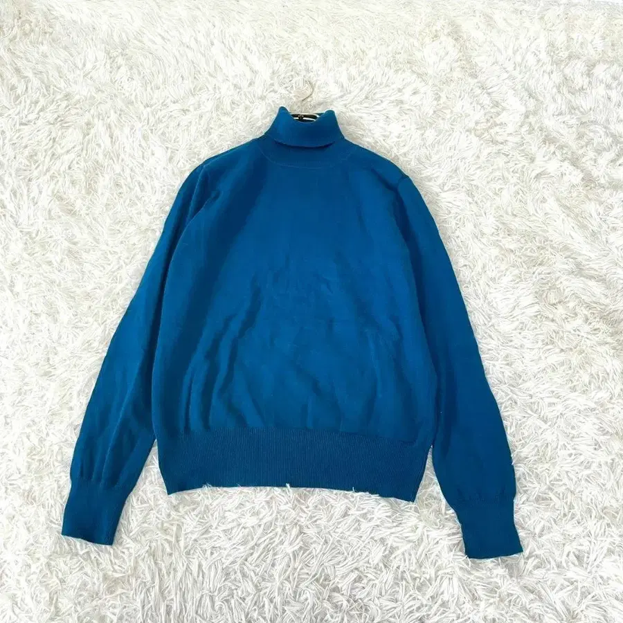 터틀넥 디자인의 100% 울 스웨터, 사이즈 38 ( M ), 깊은 파란색이 특징입니다.