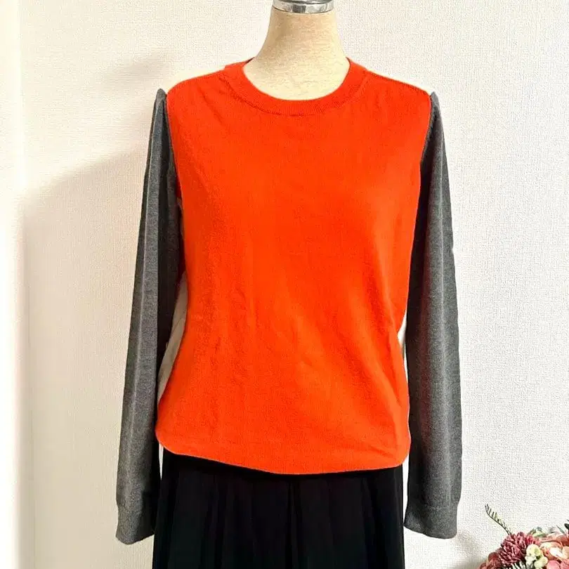 새상품급 GAP 긴팔 니트 오렌지 그레이 바이컬러 크루넥 스웨터