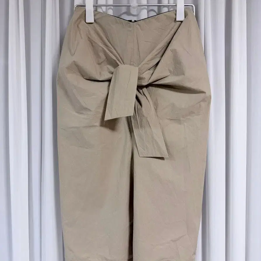 PLAIN PEOPLE 리본 포함 베이지 미디 기장 스커트