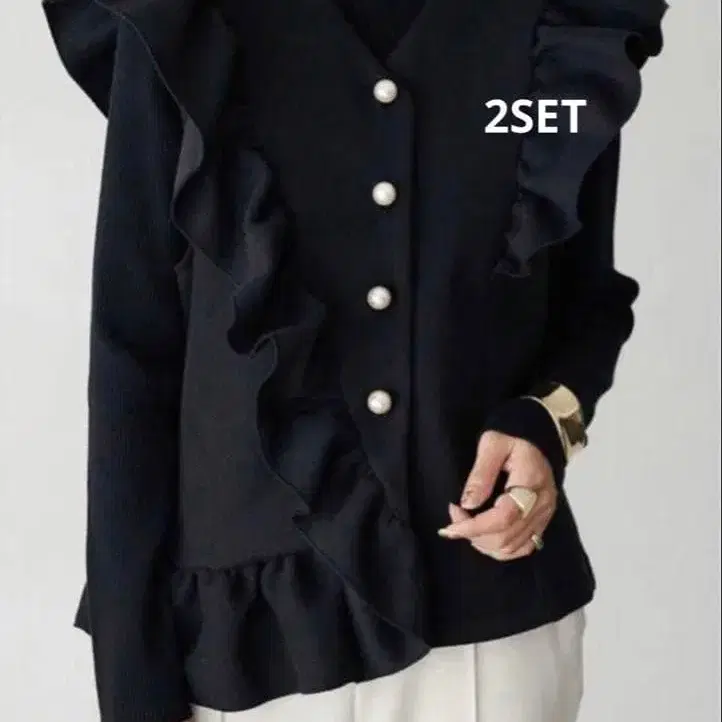 frene 비대칭 프릴 디자인 펄 버튼 베스트