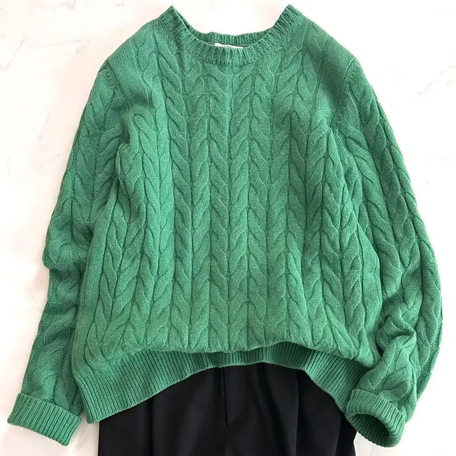 입체감 있는 케이블 짜임이 매우 귀여운 스웨터입니다.