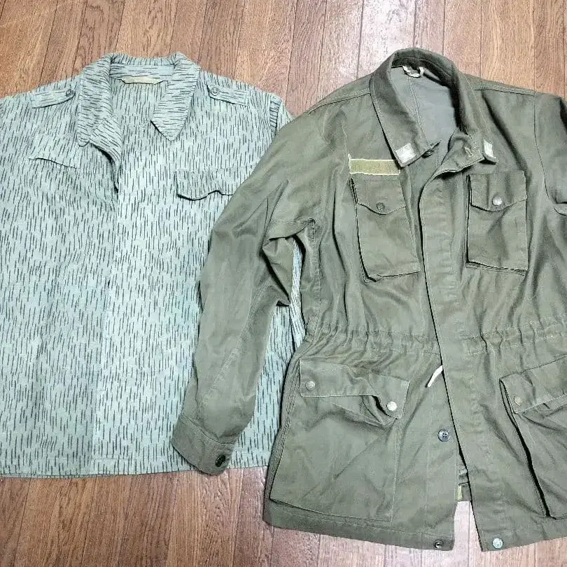 방문해 주셔서 감사합니다. 유럽 밀리터리 자켓 2세트 (묶음 판매)입니다. 컬렉션 정리를 위해 저렴하게 판매합니다. 1. 체코슬로바키아군 레인 카모 자켓 독특한 비 모양의 카모플라쥬가 특징인 빈티지 느낌이 가득한 제품입니다. 품이 넓어 오버사이즈 착용도 추천합니다. 어깨 너비: 50cm 기장: 67cm 가슴 너비: 68cm 소매 길이: 54cm 2. 이탈리아군 필드 자켓 심플한 올리브 색상으로 활용도 높은 밀리터리 자켓입니다. 어깨 너비: 45cm 기장: 79cm 가슴 너비: 51cm 소매 길이: 62cm [상품 상태에 대해 - 반드시 확인해 주세요] 이탈리아군 자켓의 뒷면 하단 및 등 부분의 삼각형 부품에 손바느질 수리 (리페어) 흔적이 있습니다. 전문가가 아닌 사람이 손바느질로 수리했으므로, 빈티지한 질감으로 즐겨주실 분이나 리메이크용으로 활용하실 분만 구매 부탁드립니다. 전반적으로 밀리터리 방출품 특유의 사용감, 주름, 미세한 스크래치 등이 있습니다. 트러블 방지를 위해 사진을 잘 확인하신 후, 납득하신다면 구매해 주세요. 즉시 구매 OK입니다! 잘 부탁드립니다.