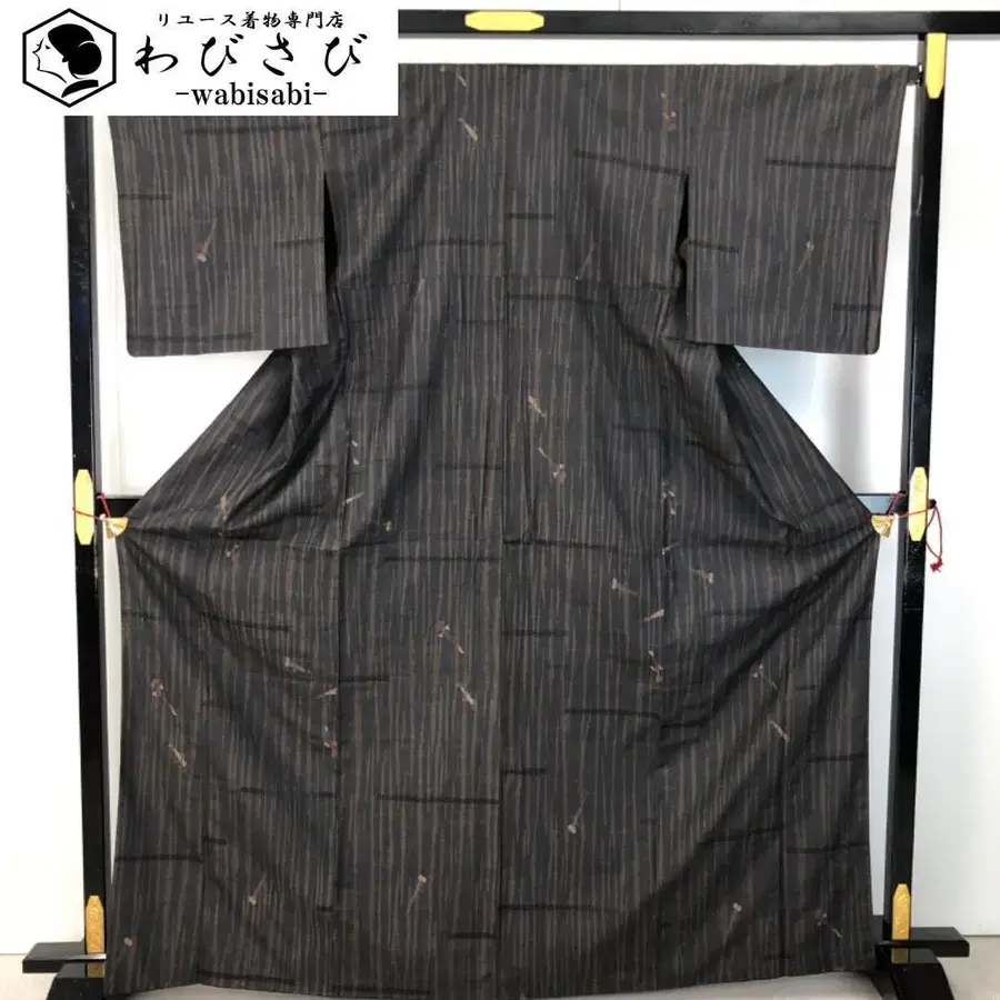 명주 기모노 물고기 패턴 세로 줄무늬 흑색 톨 사이즈 K-5653